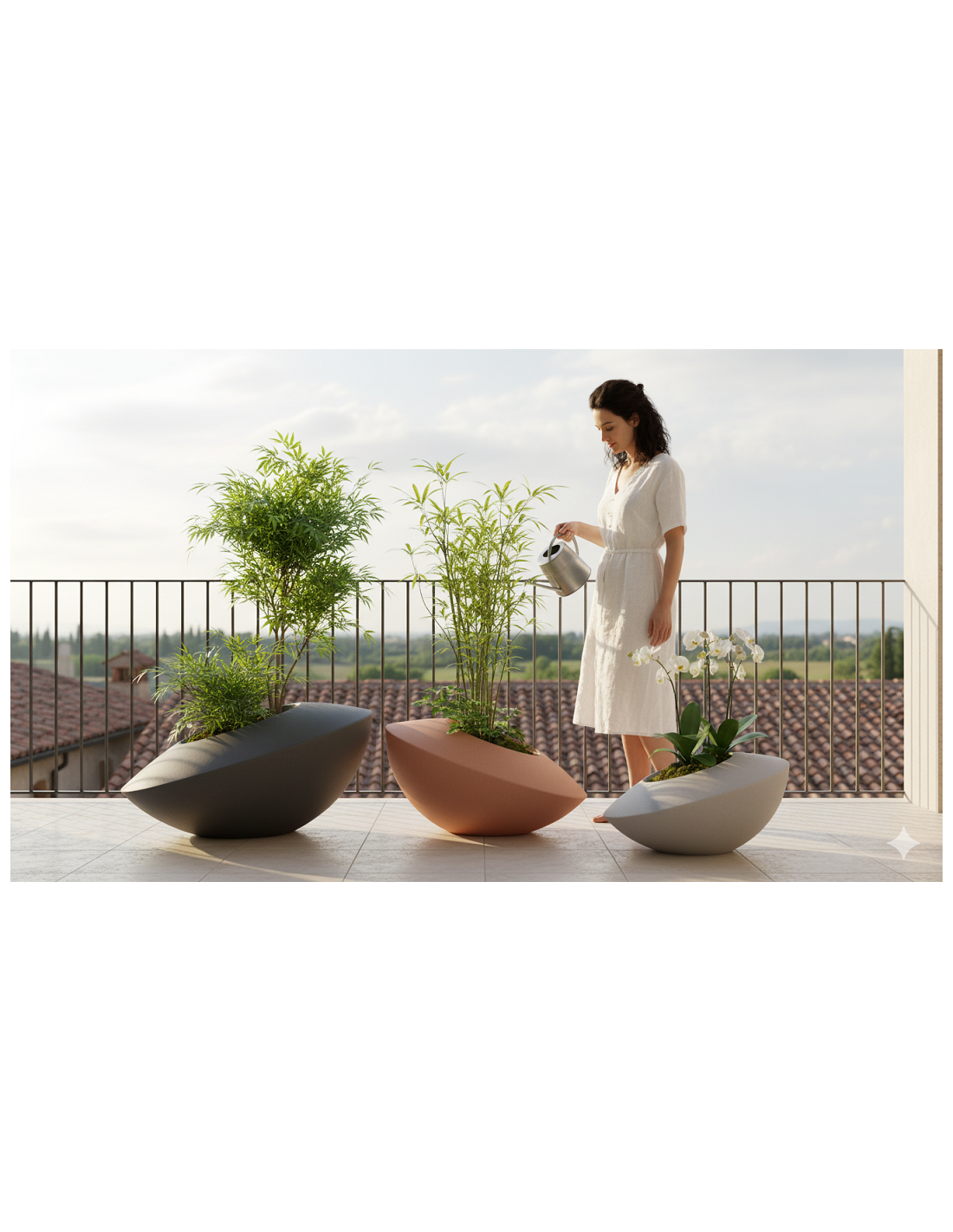 Sa forme sculpturale et harmonieuse crée un effet visuel unique, jouant sur la stabilité et la douceur des courbes. Disponible en plusieurs teintes naturelles, ce pot s’intègre parfaitement dans tout environnement extérieur moderne.