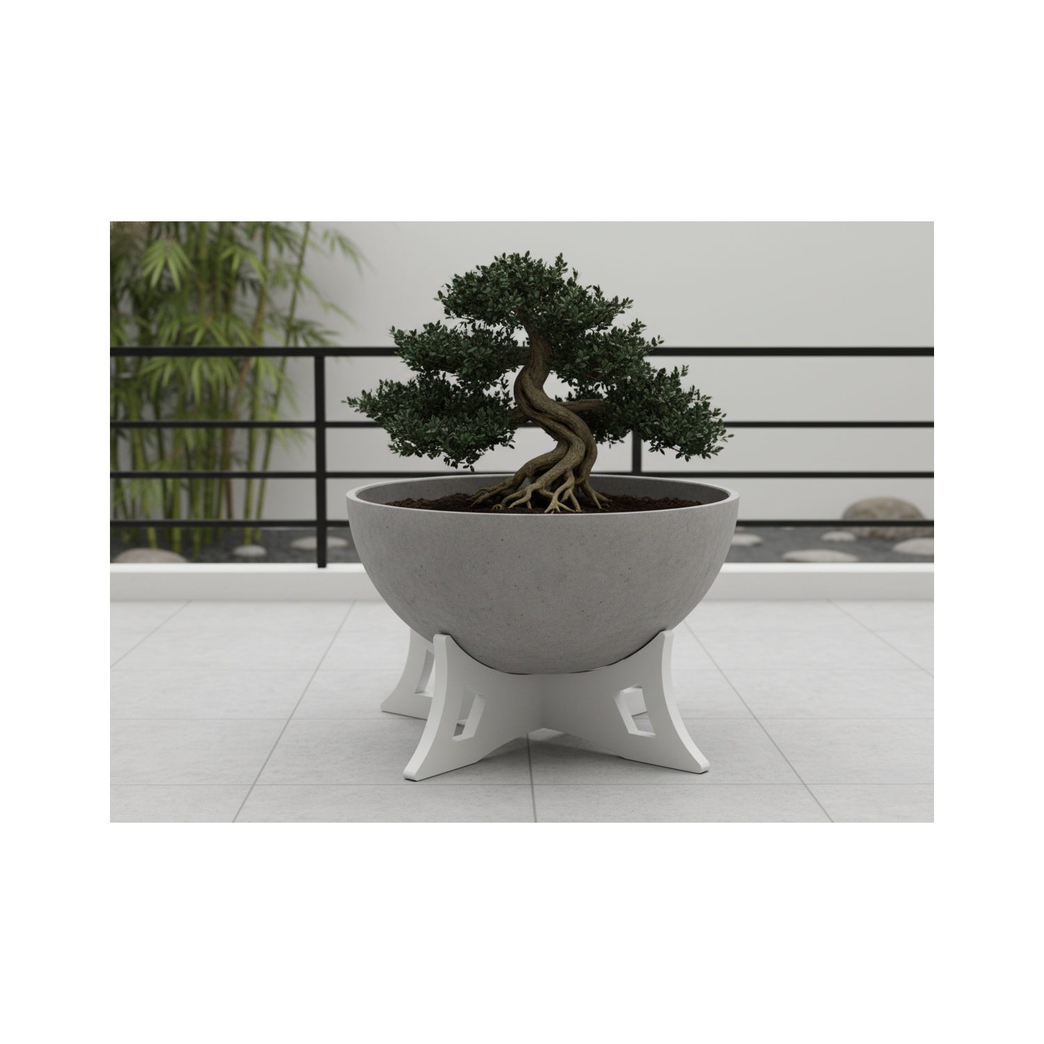 Apportez une touche moderne et élégante à votre espace avec ce pot de fleur en béton Ø45 cm, monté sur un support en bois massif de 30 cm de hauteur.