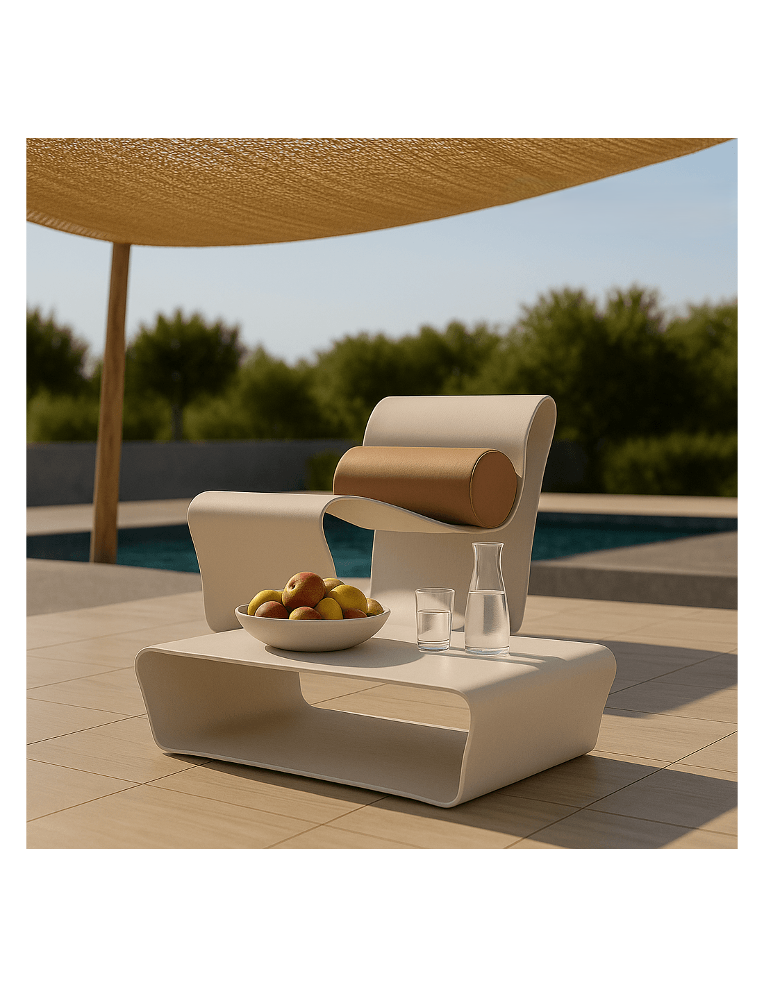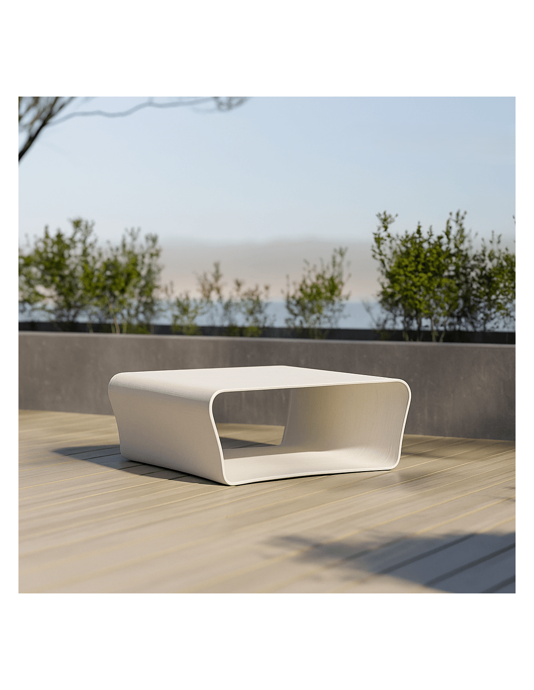 Table basse contemporaine en béton aux lignes fluides et épurées. Son design monobloc sculptural lui confère une présence élégante et moderne dans tout espace extérieur. Robuste et résistante aux intempéries, cette table est idéale pour une terrasse, un jardin ou un espace lounge.