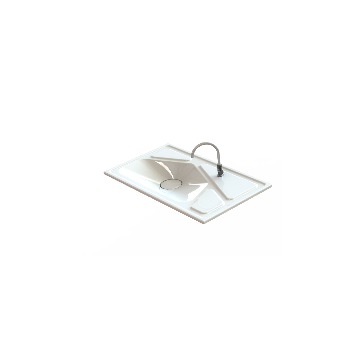 La zone d’évacuation est dotée d’une Cache Bande , parfaitement intégrée dans la géométrie de la vasque pour un rendu minimaliste et haut de gamme.